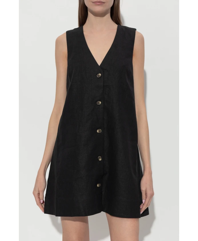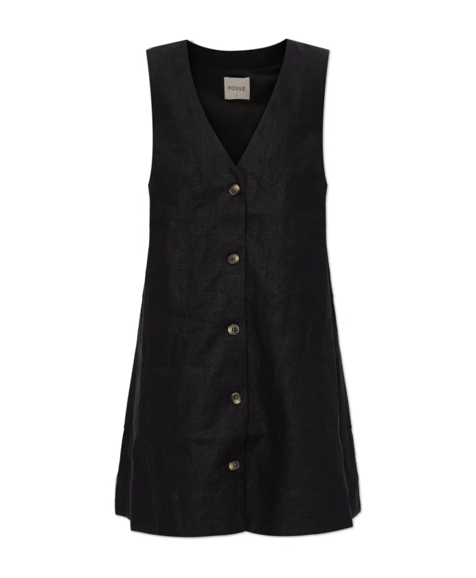 Мини-платье Posse Nancy - это минималистичное платье А-силуэта с глубоким V-образным вырезом и застежкой на пуговицы, предлагающее универсальные варианты стилизации как для дневного, так и для вечернего образа. Ключевые особенности: Черный | Лен | Застежка на пуговицы | Подкладка | Дизайнерская этикетка внутри | Глубокий V-образный вырез | Силуэт А-силуэт | Мини-длина | Без рукавов | Видимые большие пуговицы | Размеры и посадка: Длина (размер S): 82,0 см (от плеча) | Параметры модели: Рост: 177 см, Обхват груди: 83 см, Обхват талии: 61 см, Обхват бедер: 89 см | Классический крой | Соответствует размеру | Модель носит размер S. Состав и уход: Верхняя ткань: 100% лен | Подкладка: 100% хлопок | Стирать в холодной воде.