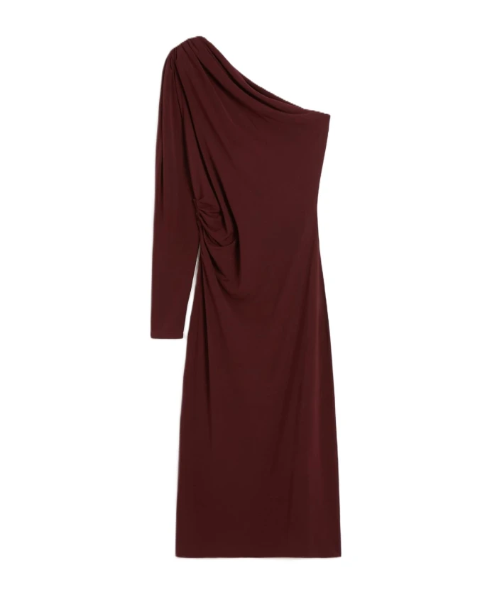 Платье MAX MARA STUDIO Gargano - это миди-платье на одно плечо из вискозного трикотажа с асимметричным вырезом и драпировкой, идеально подходящее как для дневных, так и для вечерних образов. Ключевые особенности: Красный | Бордовый | Вискоза | Мягкая ткань | Трикотаж интерлок | Силуэт на одно плечо | Диагональный асимметричный вырез | Длинные втачные рукава | Юбка-карандаш | Драпировка на талии и плечах | Размеры и посадка: Приталенный | Длина миди | Состав и уход: 100% вискоза | Не стирать; не отбеливать; не сушить в сушильной машине; гладить при низкой температуре; профессиональная химчистка с перхлорэтиленом - щадящий режим; не стирать влажным способом; гладить тканью между стирками.