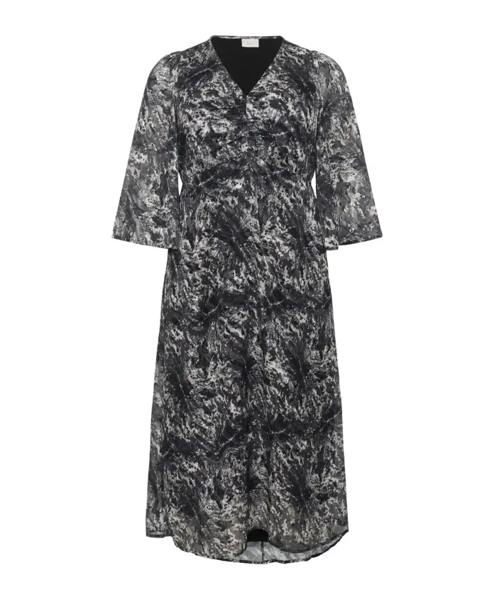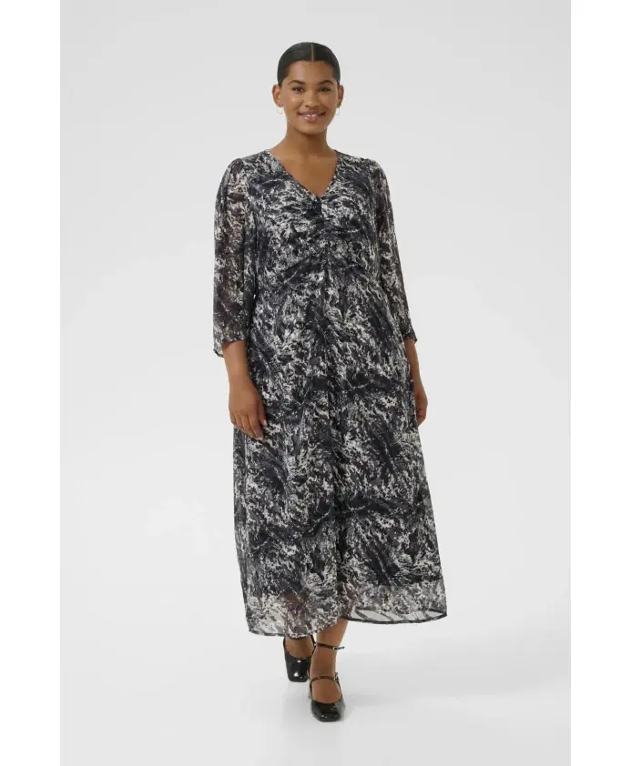 Длинное платье Kaffe Curve Alicia с принтом предназначено для повседневной носки и неформальных случаев. Оно имеет глубокий V-образный вырез и струящийся, расклешенный силуэт для комфортного ношения в течение всего дня. Ключевые особенности: Многоцветное | Черный | Серый абстрактный графический принт | Полиэстер | Полупрозрачное | Легко надевается | Вискоза | Глубокий V-образный вырез | Рукава 3/4 | Расклешенный силуэт | Принт | Длинное | Размеры и посадка: Общая длина: 130 см (размер 46) | Длина рукава: 3/4 | Стандартный крой | Рост модели 172 см, размер 46 | Состав и уход: Верхняя ткань: 100% полиэстер | Подкладка: 100% вискоза | Не отбеливать. Не сушить в сушильной машине.