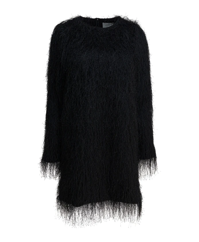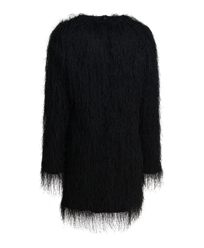 Мини-платье Tina от Loulou de Saison сочетает в себе фактурную ткань с бахромой и прямой мини-силуэт, создавая изысканный, но игривый образ. Подкладка и длинные рукава делают его подходящим как для дневных, так и для вечерних мероприятий. Ключевые особенности: Черный | Полиэстер | Легкая ткань | Застежка-молния сзади | Подкладка | Скрытые боковые карманы | Круглый вырез | Длинные рукава | Текстура с бахромой | Прямой силуэт | Мини-длина | Размер и посадка: Стандартный крой | Мини-длина | Состав ткани и уход: 100% полиэстер | Хлопковая подкладка | Ручная стирка или химчистка; сушить в расправленном виде. Избегать контакта с парфюмерией и растворителями.