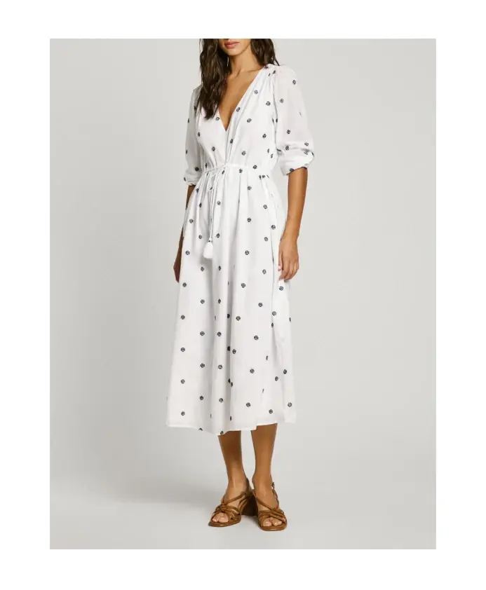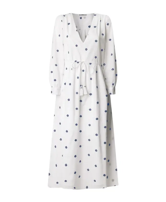 Расширьте свой гардероб вышитым миди-платьем от Pepe Jeans, сшитым из хлопковой ткани добби. Это платье с глубоким V-образным вырезом, слегка пышными рукавами и замысловатой вышивкой станет универсальным выбором для любого случая. Ключевые особенности: Цвет: кремовый | Белый | Хлопковая ткань добби | Регулируемая талия на шнурке с декоративными кисточками | Боковые карманы | Регулируемые манжеты на пуговицах | Глубокий V-образный вырез | Слегка пышные рукава | Замысловатая вышивка | Сборки на плечах | Размеры и посадка: стандартный крой | Состав и уход: хлопок | Машинная стирка в холодной воде, сушка в барабане при низкой температуре