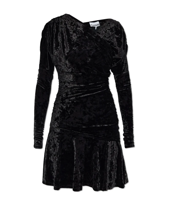 Бархатное платье Ganni сочетает в себе приталенный силуэт, мерцающую бархатную текстуру и асимметричный вырез, созданное для элегантных вечерних и праздничных нарядов. Ключевые особенности: Черный | Бархат | Асимметричный вырез | Длинные, слегка присборенные рукава | Слегка расклешенный подол | Крой, подчеркивающий талию | Минималистичная отделка | Мерцающая бархатная текстура | Размеры и посадка: Приталенный крой | Ткань и уход: Машинная стирка в холодной воде; не отбеливать; не сушить в сушильной машине; гладить при низкой температуре; не подвергать химчистке; стирать наизнанку; стирать с вещами схожих цветов.