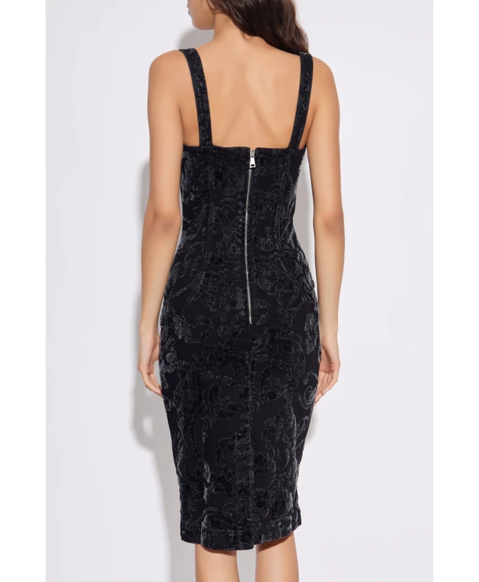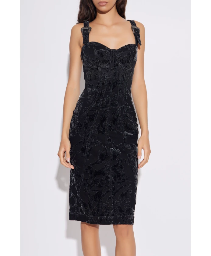 Платье-комбинация Versace Jeans Couture сочетает в себе облегающий силуэт миди с корсетным лифом и бархатной тканью с тисненым цветочным узором, создавая изысканный вечерний образ. Ключевые особенности: Черный | Хлопок | Эластичная ткань | Удобный крой | Вырез «сердечко» | Вставки и корректирующие швы | Широкие, собранные бретели | Бархатная ткань с тисненым цветочным узором | Силуэт миди | Размеры и посадка: Рост: 176 см | Обхват груди: 85 см | Обхват талии: 60 см | Обхват бедер: 89 см | Модель носит размер: 40 | Облегающий силуэт миди | Корсетный лиф | Состав и уход: Хлопок | Эластан