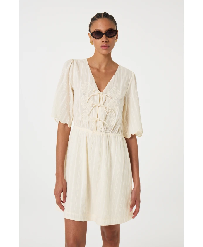 Платье Rory от Fabienne Chapot - очаровательное платье с короткими рукавами уютного кремово-белого цвета, идеально подходящее для летних дней. Изготовленное из 100% хлопка, оно украшено игривой шнуровкой на вырезе горловины, что делает его универсальной базовой вещью, которую можно носить как отдельно, так и в сочетании с кардиганом. Ключевые особенности: Кремово-белый | Бежевый | 100% хлопок | Короткие рукава | Шнуровка на вырезе горловины | Посадка и размер: Универсальная посадка | Состав и уход: 100% хлопок | Машинная стирка в холодной воде, сушка в барабане при низкой температуре
