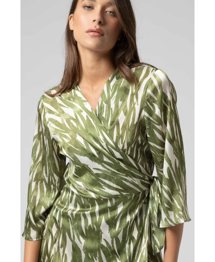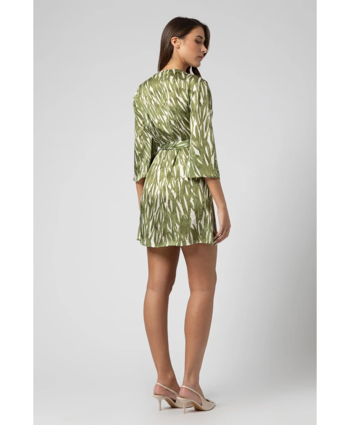 Платье Kocca ARTASX - это короткое платье-халат с принтом, созданное для вечеринок. Оно имеет привлекательный силуэт с запахом, вшитый пояс для подчеркивания фигуры и легкую, мягкую текстуру. Ключевые особенности: Зеленый | Fantasia Panna | Verde | Полиэстер | Мягкая ткань | Легкая ткань | Струящаяся драпировка | Вшитый пояс | Застежка на запах | Регулируемая завязка | V-образный вырез | Рукава три четверти | Слегка расклешенные рукава | Длина до середины бедра | Принт с листьями | Силуэт с запахом | Размеры и посадка: Рост модели 175 см, размер S/42 | Состав и уход: 100% полиэстер