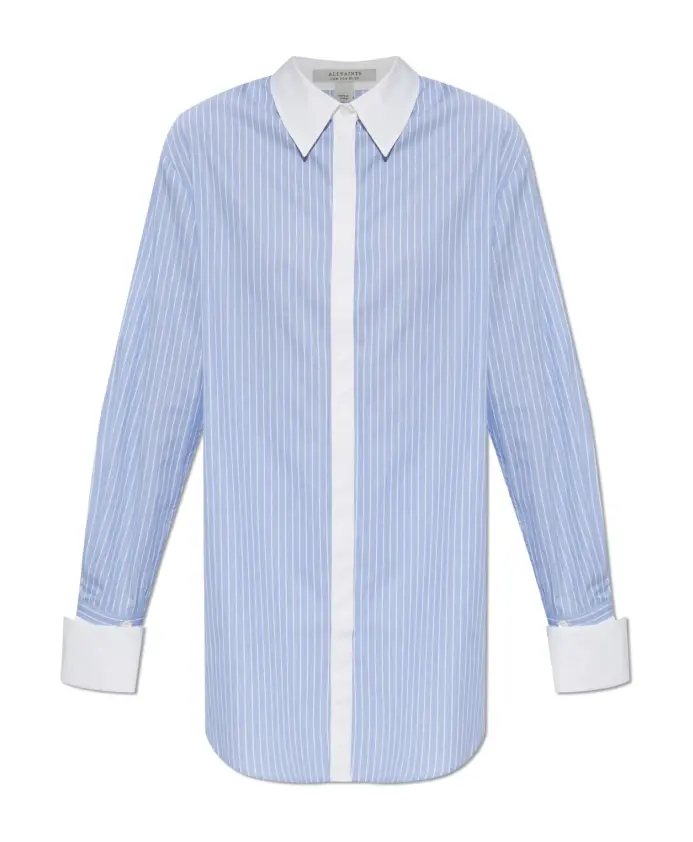 Представляем платье Albert от AllSaints - стильное сочетание классического и современного дизайна. Эта синяя рубашка с белыми вертикальными полосами изготовлена из высококачественного хлопка и имеет силуэт туники, идеально подходящий для весны и лета. Ключевые особенности: Синий | Белый | Хлопок | Дышащий | Вертикальные полосы | Белые манжеты | Белый воротник | Скрытые пуговицы под планкой | Небольшая металлическая фирменная нашивка | Размер и посадка: Свободный | Свободный крой | Состав и уход: 100% хлопок | Стирать в холодной воде, сушить в сушилке при низкой температуре.