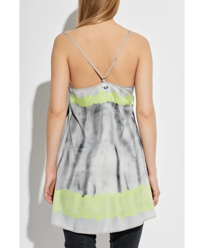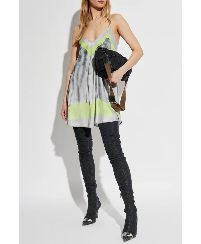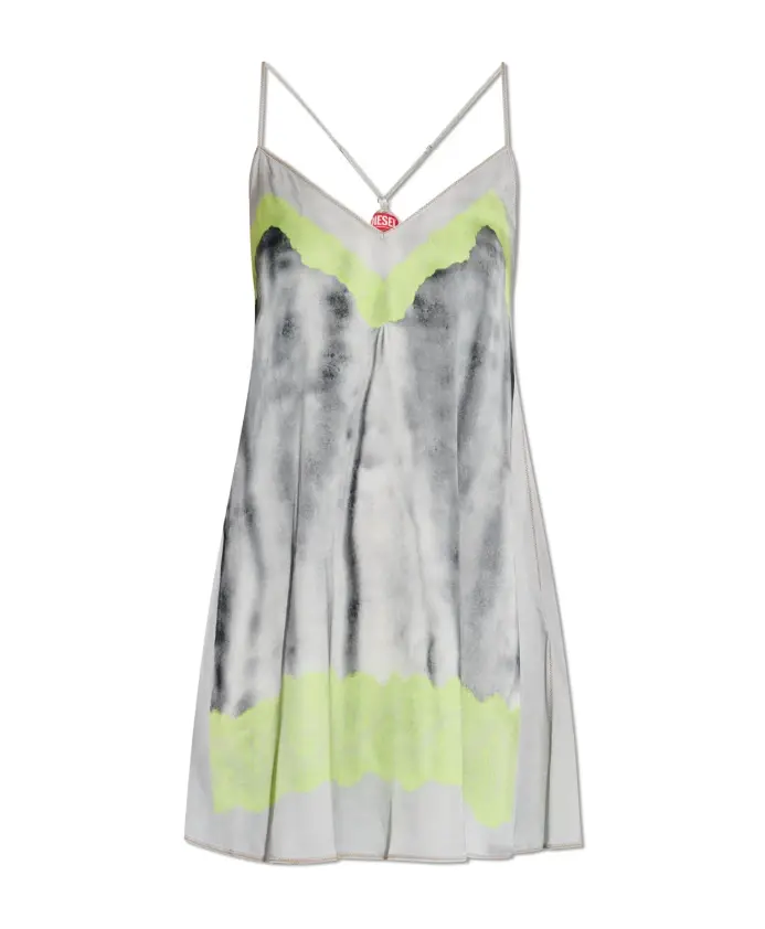 Представляем платье D-ESIRE от Diesel - потрясающую вещь, воплощающую современную элегантность благодаря уникальному узору в стиле тай-дай и неоновым акцентам. Это короткое платье с тонкими бретелями, созданное для комфорта и стиля, идеально подходит для теплых дней. Ключевые особенности: Многоцветное | Вискоза | Дышащая ткань | Тонкие бретели | V-образный вырез | Узор тай-дай | Ненавязчивый металлический логотип | Крой и драпировка: Легкое и нежное | Состав и уход: 97% вискоза | 3% эластан | Машинная стирка в холодной воде, сушка в барабане при низкой температуре.