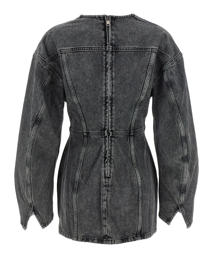 Джинсовое мини-платье Haikure с V-образным вырезом - это хлопковое мини-платье с выразительным V-образным вырезом и широкими рукавами с разрезами, сочетающее в себе структурированность и непринужденный стиль. Идеально подходит для дневных мероприятий или элегантных повседневных образов. Ключевые особенности: Серый | Хлопок | Застежка-молния сзади | V-образный вырез | Длинные широкие рукава с разрезами | Мини-длина | Вертикальные швы | Размер и посадка: Соответствует размеру | Состав ткани и уход: 100% хлопок | Следуйте инструкциям производителя по уходу.