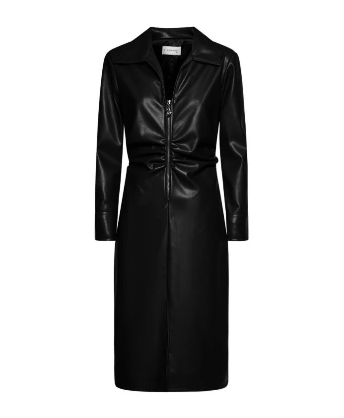 Платье миди Richmond сочетает в себе структурированный заостренный воротник, металлическую молнию спереди и декоративные элементы, создавая скульптурный, эффектный образ. Центральная драпировка подчеркивает талию, придавая силуэту современность и выразительность. Ключевые особенности: Черный | Черный | Полиуретан | Металлическая молния спереди с декоративными элементами | Центральная драпировка для придания формы | Заостренный воротник | Структурированный силуэт | Центральная драпировка | Четкие линии | Длина миди | Состав и уход: 100% полиуретан