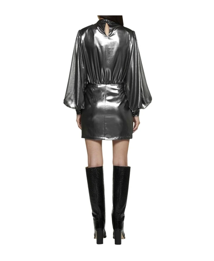 Ламинированное мини-платье Abelia от Blanca Vita сочетает в себе гладкую ламинированную поверхность и эффектные пышные рукава, создавая современный образ для вечеринки. Мини-силуэт и изящная деталь в виде пуговиц на спине делают его идеальным для вечерних мероприятий и особых случаев. Ключевые особенности: Серый | Серебристый | Полиэстер | Застежка-молния сбоку | Застежка на пуговицы сзади | Пышные рукава | Длинные рукава | Ламинированная поверхность | Мини-длина | Две маленькие пуговицы сзади | Состав и уход: 100% полиэстер | Ручная стирка