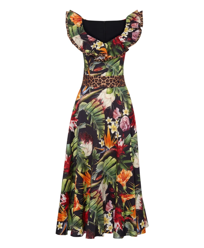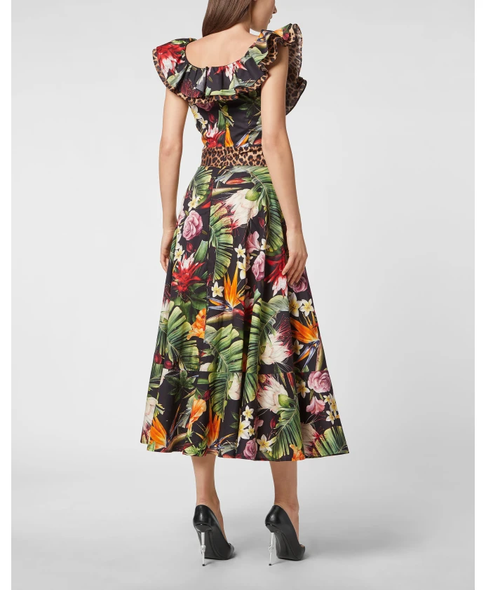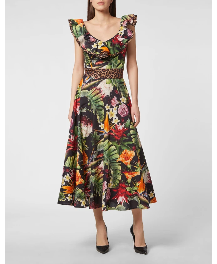 Длинное платье Philipp Plein FLOWERS - это миди-платье из хлопкового поплина с цветочным принтом, романтичным расклешенным силуэтом и оборками. Созданное для дневных мероприятий, оно имеет потайную молнию по центру спины для безупречного вида. Ключевые особенности: Черный | Разноцветный | Хлопковый поплин | Потайная молния по центру спины | Двойной воротник с оборками | Точка на талии | Расклешенная юбка с воланами по низу | Цветочный принт | Размеры и посадка: Расклешенный силуэт | Длина миди | Состав и уход: 97% хлопок | 3% эластан