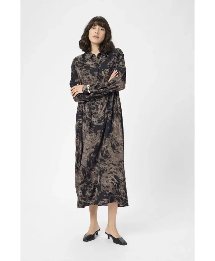 Платье Kaffe KCjamia - это платье-рубашка свободного кроя, созданное для повседневной носки. Оно имеет классический воротник, застежку на пуговицы спереди и длинные рукава с эластичными манжетами, что делает его универсальным вариантом как для работы, так и для выходных. Ключевые особенности: Разноцветное | Коричневый графический принт | Застежка на пуговицы спереди | Эластичные манжеты | Классический воротник | Длинные рукава | Силуэт платья-рубашки | Размеры и посадка: Свободный крой | Длина выше колена