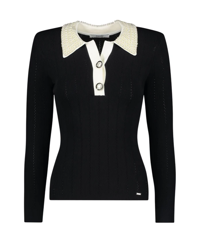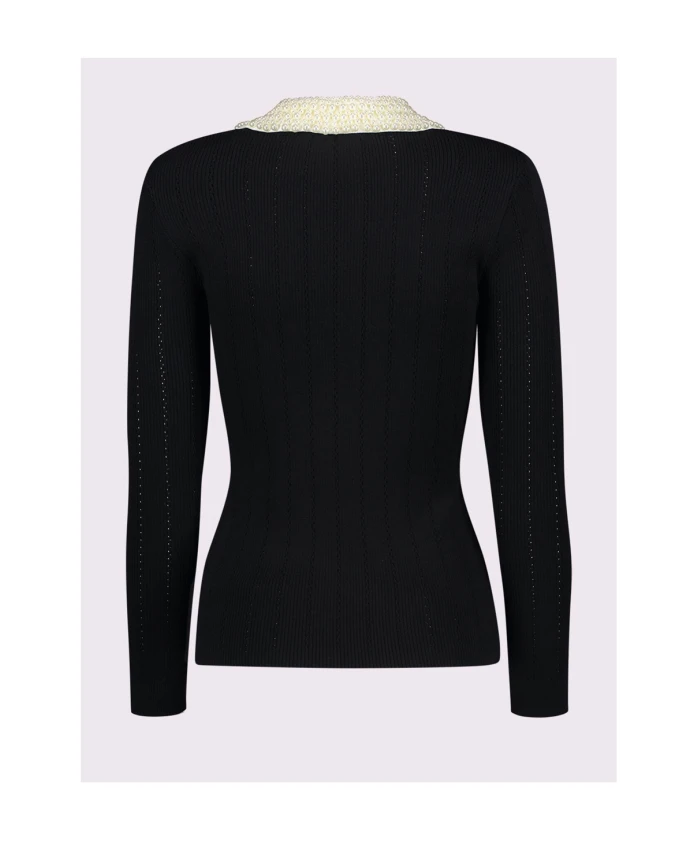 Вязаное платье-поло Gaudì сочетает в себе ажурную вязку с деталями из жемчуга и украшенных драгоценными камнями пуговиц, создавая изысканный и элегантный образ, идеально подходящий для стильного отдыха. Ключевые особенности: Черный | Смесь вискозы | Застежка на пуговицы | Воротник-поло | Жемчужная отделка | Украшенные драгоценными камнями пуговицы | Ажурная вязка | Короткая длина | Размеры и посадка: Приталенный крой | Рост модели 176 см, размер 42/S | Состав ткани и уход: 65% вискоза, 35% полиамид