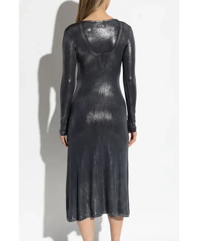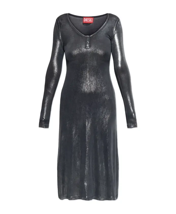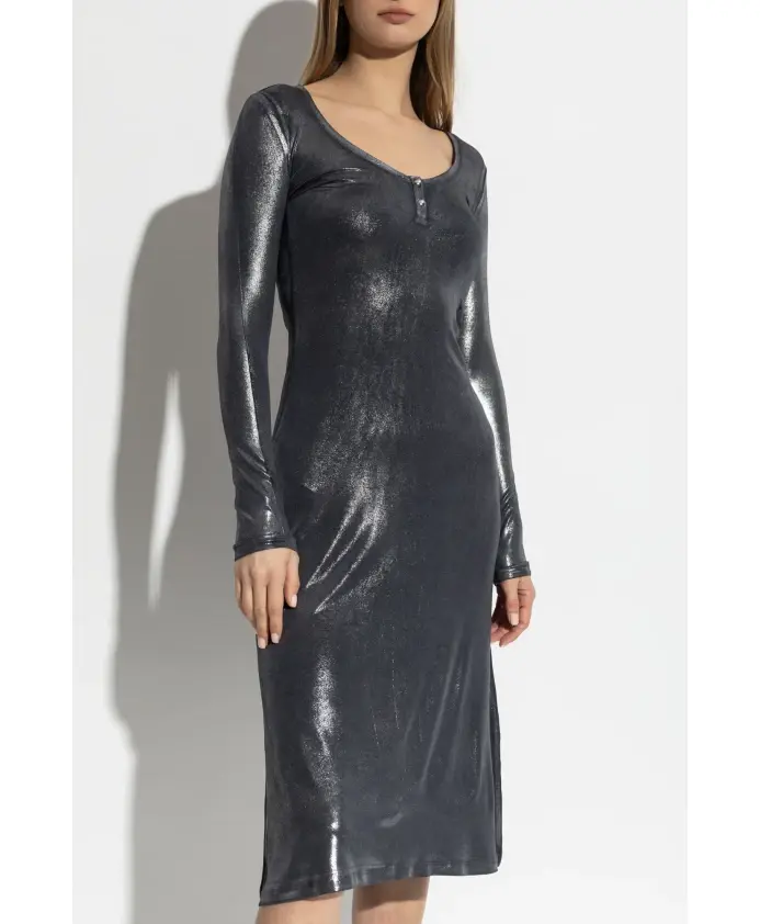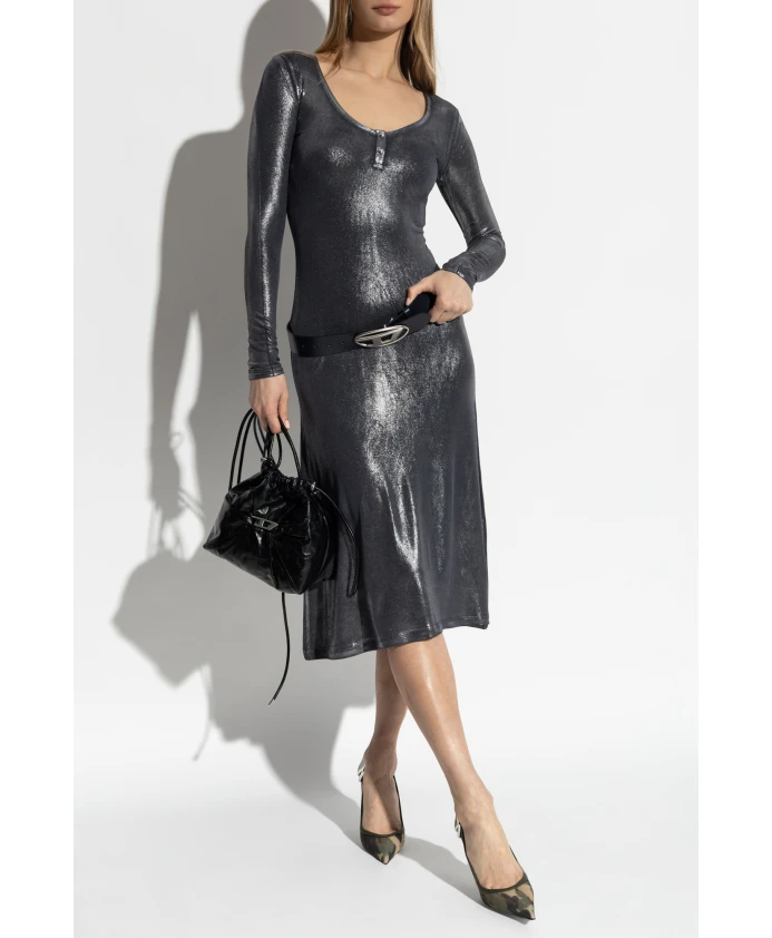 Откройте для себя платье D-AMA-LS из эксклюзивной коллекции Diesel - потрясающее платье серебристого цвета с металлическим блеском, воплощающее элегантность и современность. Это платье миди имеет облегающий крой, подчеркивающий силуэт, и при этом обеспечивает комфорт благодаря эластичной ткани. Ключевые особенности: Серебристый | Серый | Ацетат | Эластан | Круглый вырез с застежкой на две пуговицы | Длинные рукава | Размеры и посадка: Облегающий крой | Состав и уход: Ацетат | Эластан