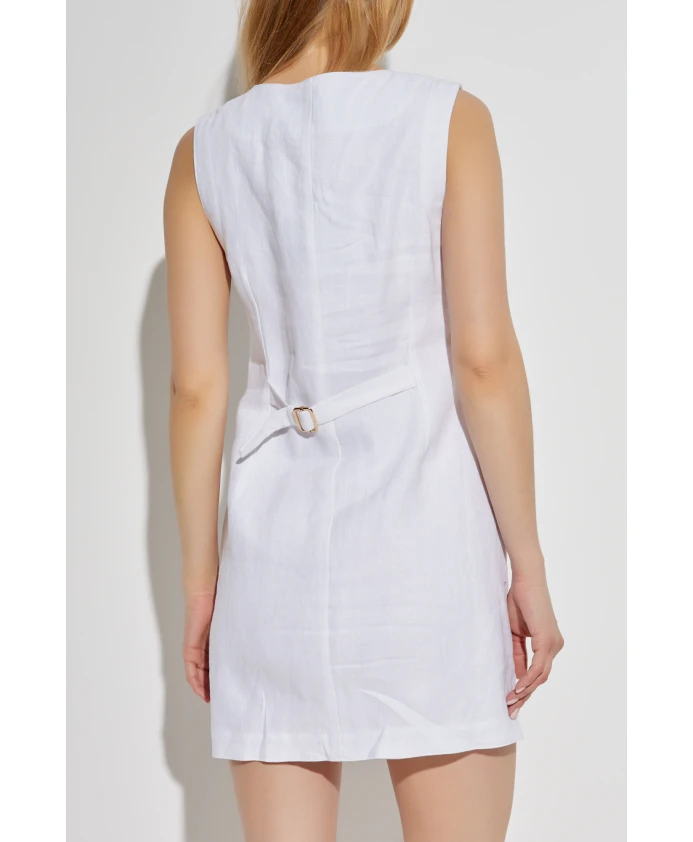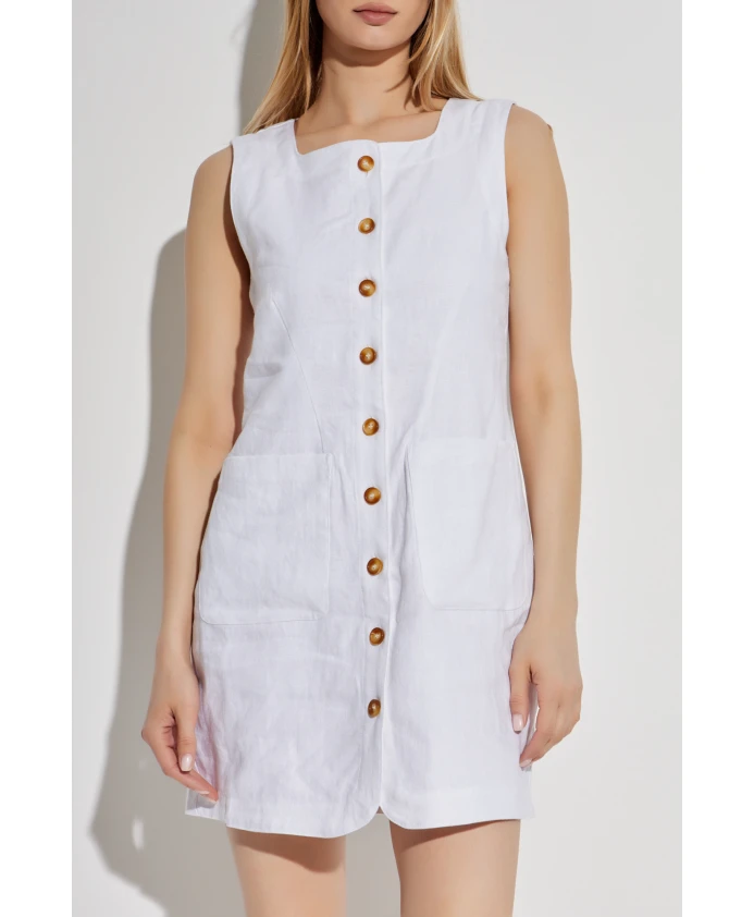 Posse представляет льняное платье - мини-платье без рукавов прямоугольного кроя из дышащего льна с застежкой на пуговицы по всей длине и практичными передними карманами, созданное для комфортного ношения в теплую погоду. Ключевые особенности: Белый | Лен | Дышащая ткань | Застежка на пуговицы | Функциональные передние карманы | Прямоугольный крой | Без рукавов | Длина выше колена | Большие коричневые пуговицы спереди | Размеры и посадка: Прямоугольный крой | Состав и уход: 100% лен