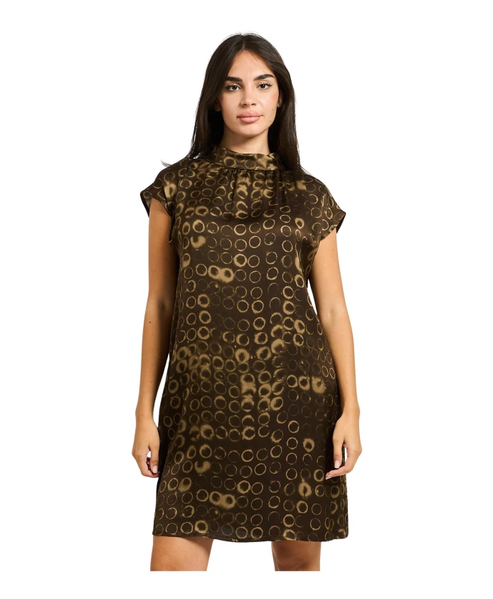 Короткое платье Manila Grace с круглым принтом - это короткое платье стандартной длины с принтом по всей поверхности. Оно сочетает в себе простой круглый вырез и короткие рукава, что делает его удобным для создания повседневных образов. Ключевые особенности: Зеленый | Военный стиль | Застежка-молния сзади | Небольшой круглый вырез | Короткие рукава | Принт по всей поверхности | Короткая длина | Размеры и посадка: Рост модели: 1,65 м; размер 40IT | Стандартный крой