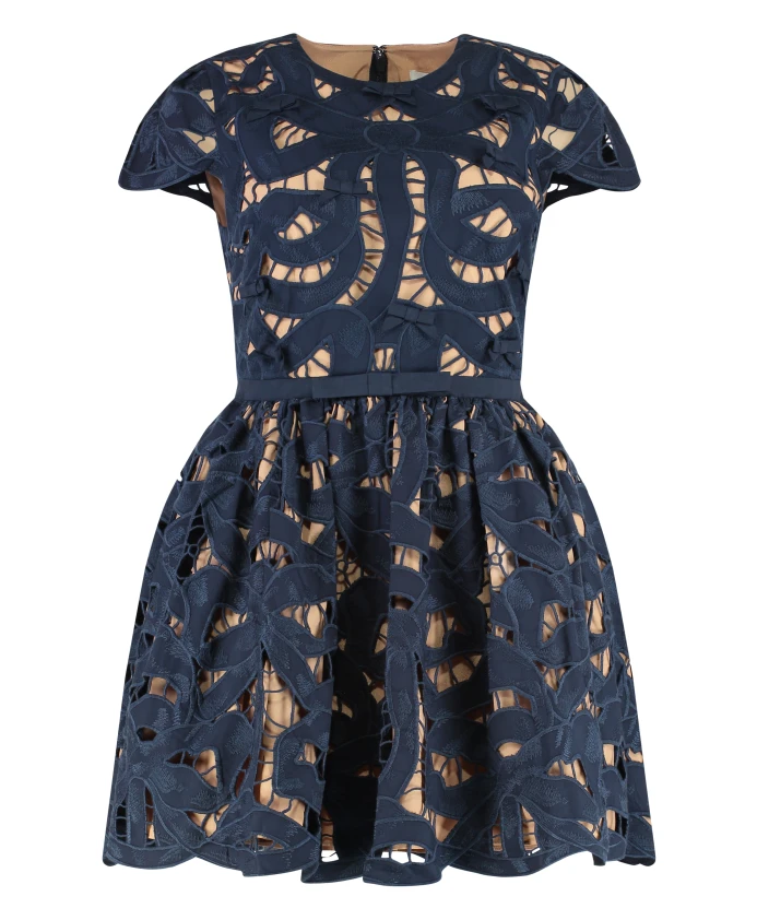 Мини-Платье с вышивкой Self Portrait, синий