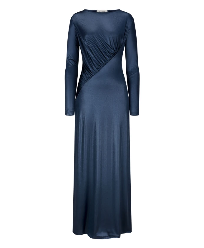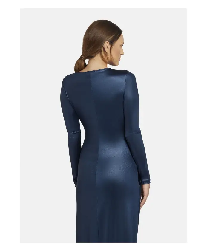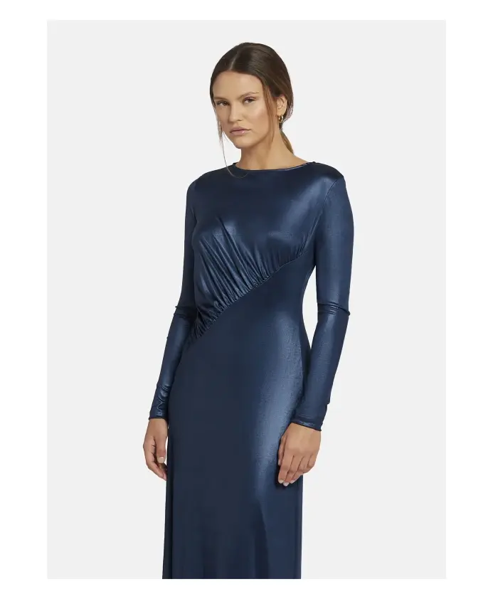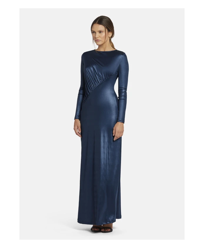 Элегантное макси-платье EWELIO от Nicowa выполнено из эластичного металлизированного трикотажа и имеет струящийся силуэт с современным акцентом в виде диагональных складок. Идеально подходит для особых случаев, его прямой силуэт и длинные рукава гарантируют незабываемое впечатление. Ключевые особенности: темно-синий | синий | эластичный металлизированный трикотаж | диагональные складки | прямой силуэт | длинные рукава | Размеры и посадка: прямой крой |