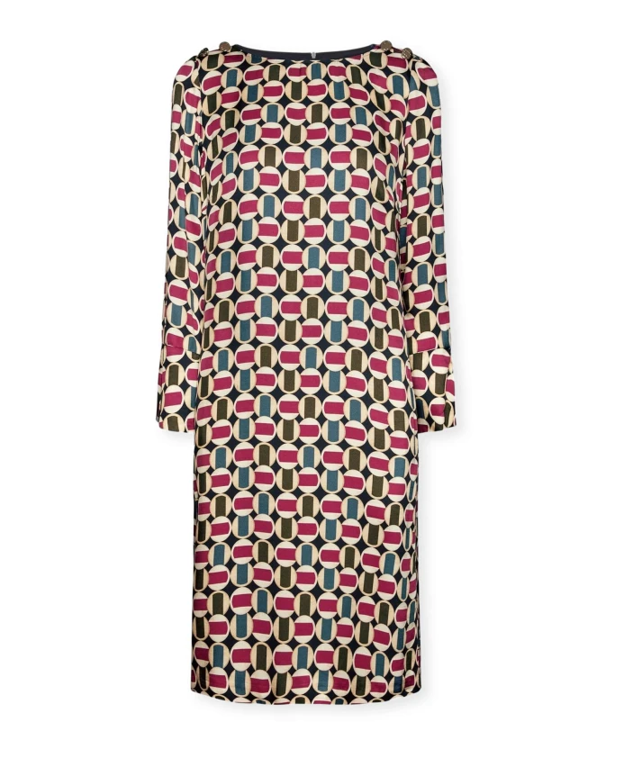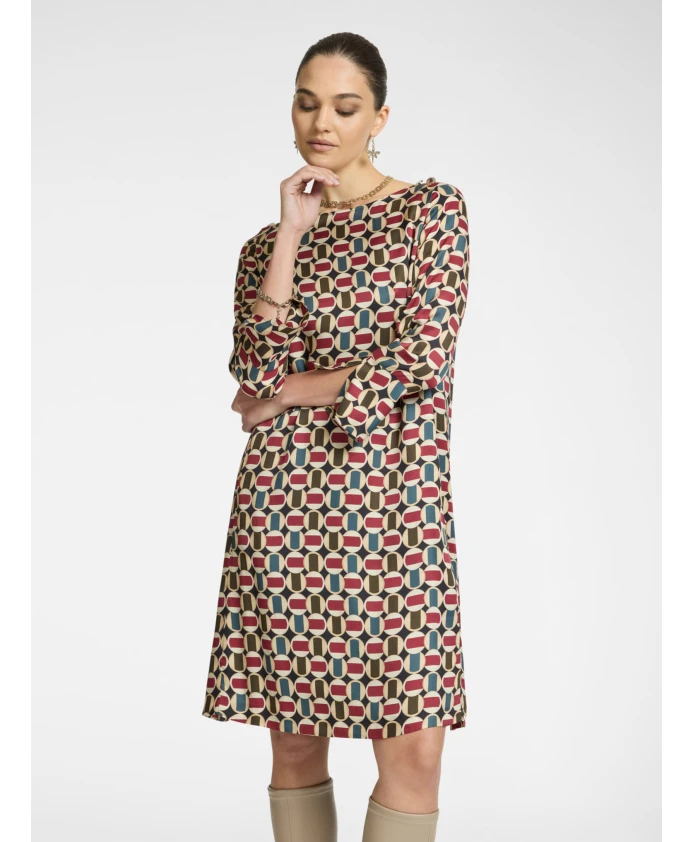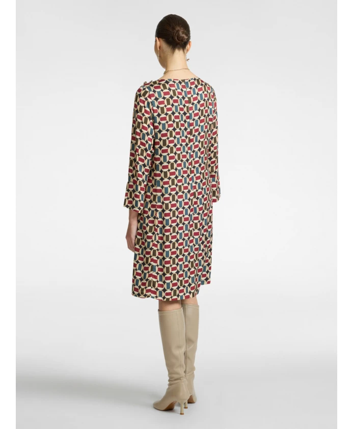 Описание товара: - Платье из вискозной саржи с геометрическим узором, тренд сезона - Вырез-лодочка, манжеты с разрезами, украшенные пуговицами с монограммой - Незаменимый элемент гардероба каждой женщины, подходящий для многих случаев. Состав и уход: - Основная ткань: 100% вискоза; основная подкладка: 95% полиэстер, 5% эластан - Не стирать; не сушить в сушильной машине; не отбеливать; только химчистка; не гладить при высоких температурах (макс. 110°C)