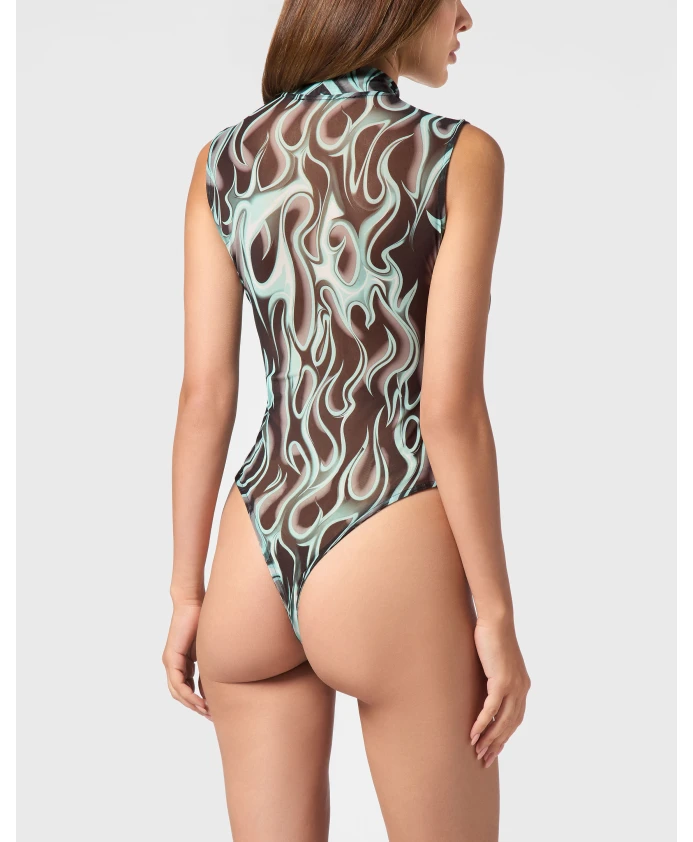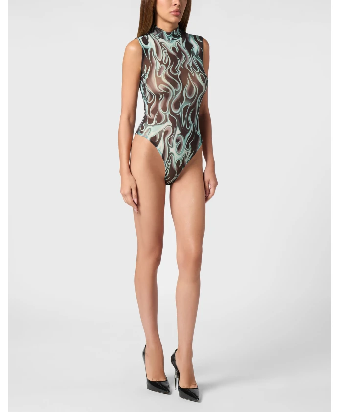 Боди без рукавов из эластичного тюля Philipp Plein Tulle Body Sleeveless Flame с принтом в виде языков пламени имеет облегающий, подчеркивающий фигуру крой. Основные характеристики: Разноцветный | Черный | Эластичный тюлевый трикотаж | Эластичная ткань | Застежка на кнопки | Двойная строчка | Без рукавов | Принт в виде языков пламени по всей поверхности | Стиль боди | Размеры и посадка: Облегающий | Состав и уход: 85% полиэстер, 15% эластан