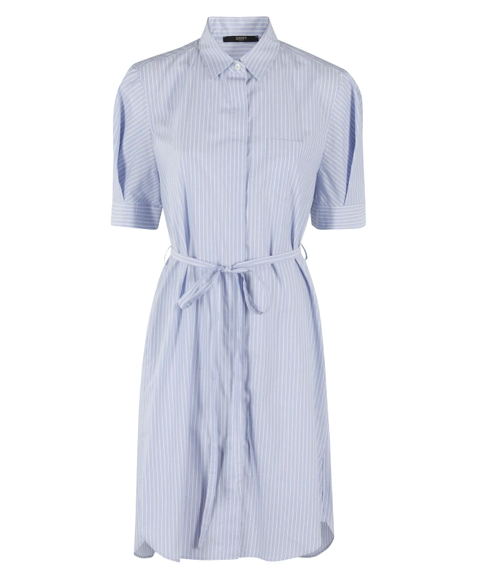 Это полосатое хлопковое платье от Seventy станет универсальным дополнением вашего гардероба и, благодаря классическому дизайну платья-рубашки, идеально подойдет для повседневных выходов. Основные характеристики: Синий | Хлопок | Воротник-рубашка | Короткие рукава с манжетами на пуговицах | Размер и посадка: Стандартный крой | Состав и уход: 100% хлопок | Машинная стирка в холодной воде, сушка в барабане при низкой температуре.