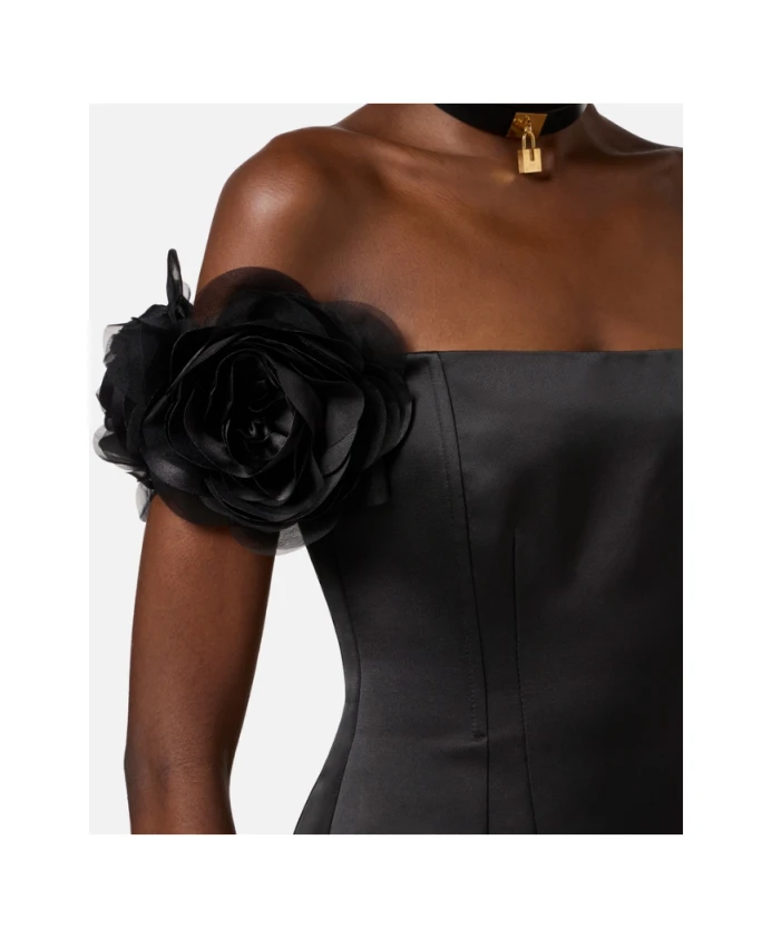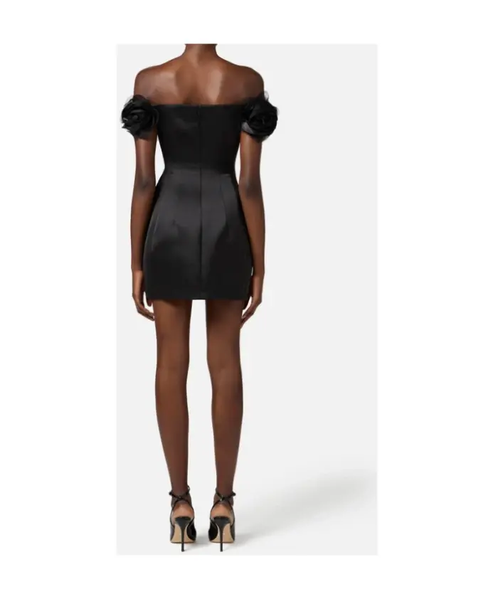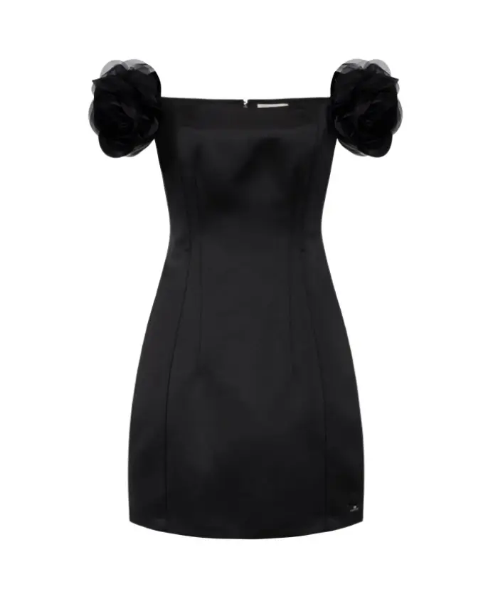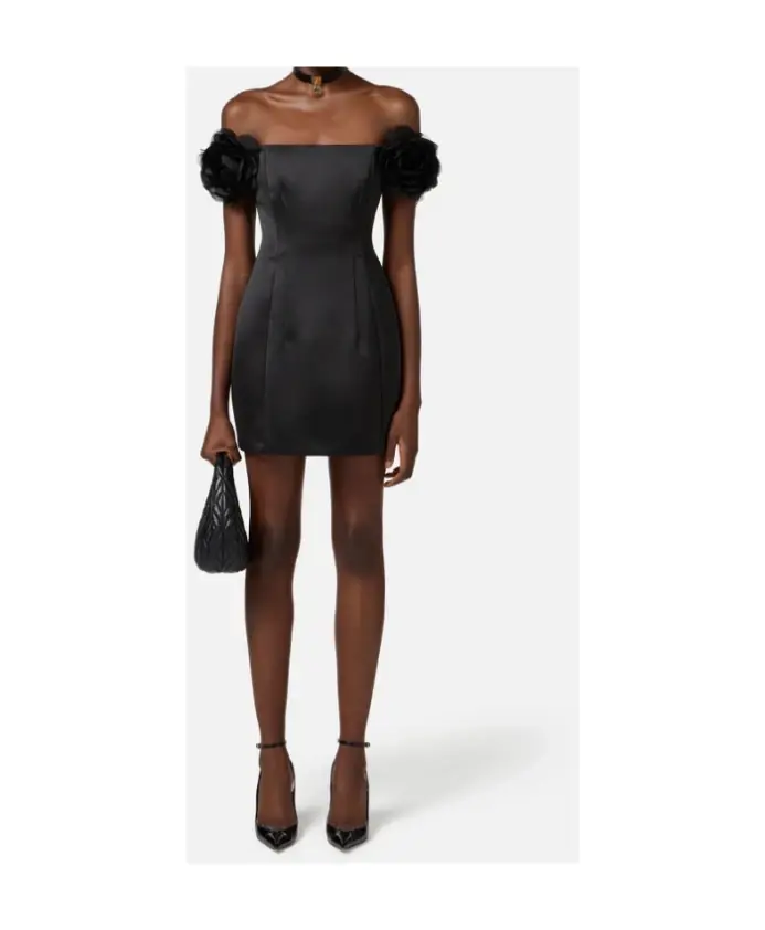 Добавьте элегантности своему стилю с платьем Elisabetta Franchi Duchesse. Это короткое платье с открытыми плечами и внутренним корсетом создает привлекательный силуэт, а цветочная отделка в тон на рукавах добавляет изысканности. Ключевые особенности: Черный | Открытые плечи | Объемный цветочный узор на коротких рукавах | Внутренняя косточка | Застежка-молния сзади | Атласная подкладка | Размеры и посадка: Стандартный крой