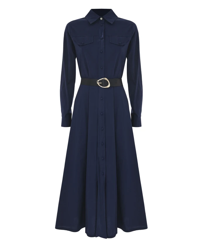 Откройте для себя элегантность Kocca с этим потрясающим платьем миди, идеально подходящим для перехода от дневного образа к вечернему. Его отличительная черта - классический фасон блузки с застежкой на все пуговицы, сочетающий в себе стиль и функциональность. Ключевые особенности: Синий | Джинсовая ткань | Застежка на все пуговицы | Нагрудные карманы | Фасон блузки | Джинсовая ткань | Размеры и посадка: Стандартный крой