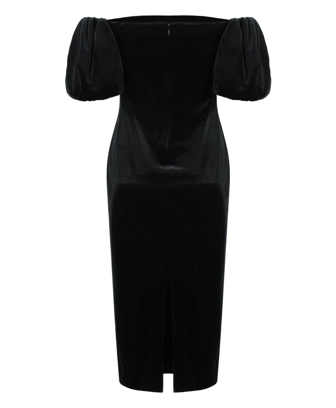 Бархатное платье миди от Ralph Lauren сочетает в себе облегающий, приталенный силуэт с квадратным вырезом и пышными рукавами, создавая элегантный вечерний или торжественный образ. Длина до колена обеспечивает универсальный и изысканный вид. Ключевые особенности: Черный | Бархат | Квадратный вырез | Пышные рукава | Длина до колена | Размеры и посадка: Облегающий силуэт | Состав ткани и уход: 90% полиэстер | 10% эластан