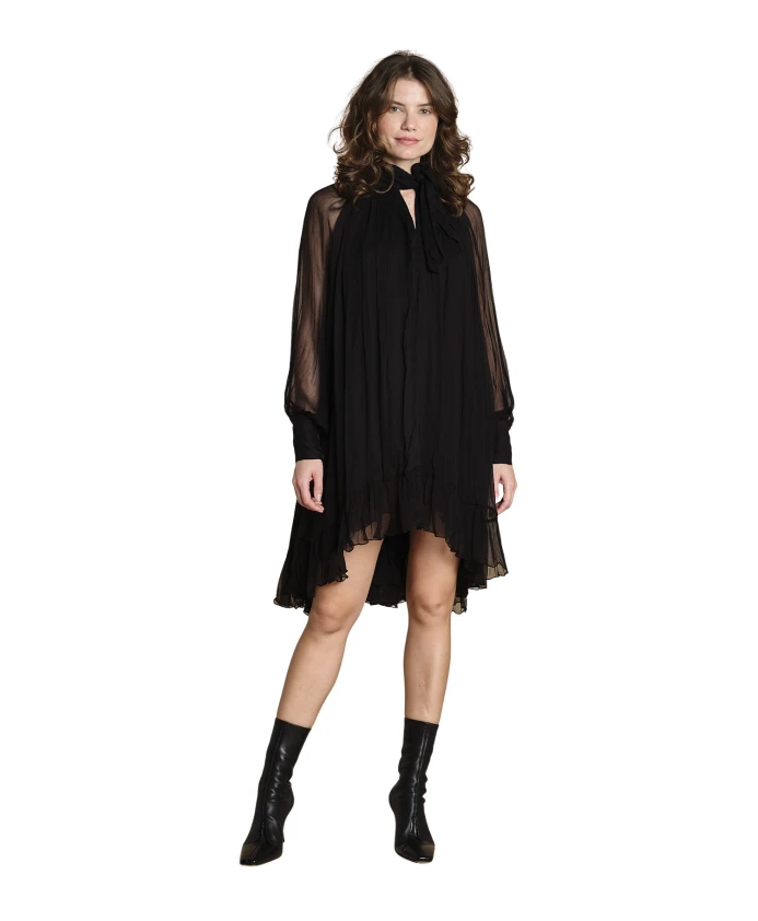 Платье Mes Demoiselles Dolly - это мини-платье для вечеринки, изготовленное из мягкой вискозной вуали. Его легкая драпировка делает его идеальным для вечерних мероприятий и особых случаев. Ключевые особенности: Черный | Вискоза | Мини-длина | Вуалевая ткань | Размеры и посадка: Рост модели 176 см, размер S. | Состав и уход: 100% вискоза | Ручная стирка; не сушить в сушильной машине; гладить аккуратно.