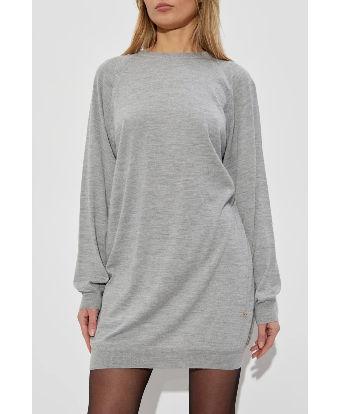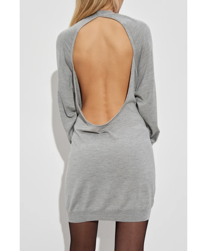 Представляем платье с открытой спиной - изысканное творение известного дизайнера Moschino. Это серое платье свободного кроя сочетает в себе элегантность и новаторский стиль, идеально отвечая современным стандартам моды. Изготовленное из роскошной смеси шерсти и шелка, ткань мягкая и приятная на ощупь. Круглый вырез и открытая спина добавляют чувственности, а едва заметный золотой логотип в виде буквы…