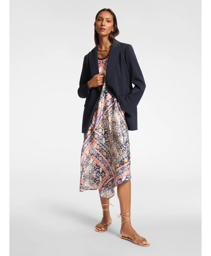 Материалы: основной материал: 100% вискоза; основная подкладка: 90% хлопок, 8% полиамид, 2% эластан. бережная стирка при температуре 40 градусов; не сушить в сушильной машине; не отбеливать; только химчистка; не гладить при высокой температуре (макс. 110°c).