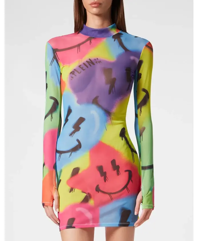 Мини-платье Philipp Plein LS Smile - это многоцветное тюлевое мини-платье с принтом, созданное для особых случаев. Оно сочетает в себе воротник-стойку и длинные рукава для элегантного вечернего образа. Ключевые особенности: Многоцветное | Эластичный полиэстеровый тюль | Эластичность | Воротник-стойка | Длинные рукава | Многоцветный принт «улыбка» | Состав и уход: 85% полиэстер, 15% эластан