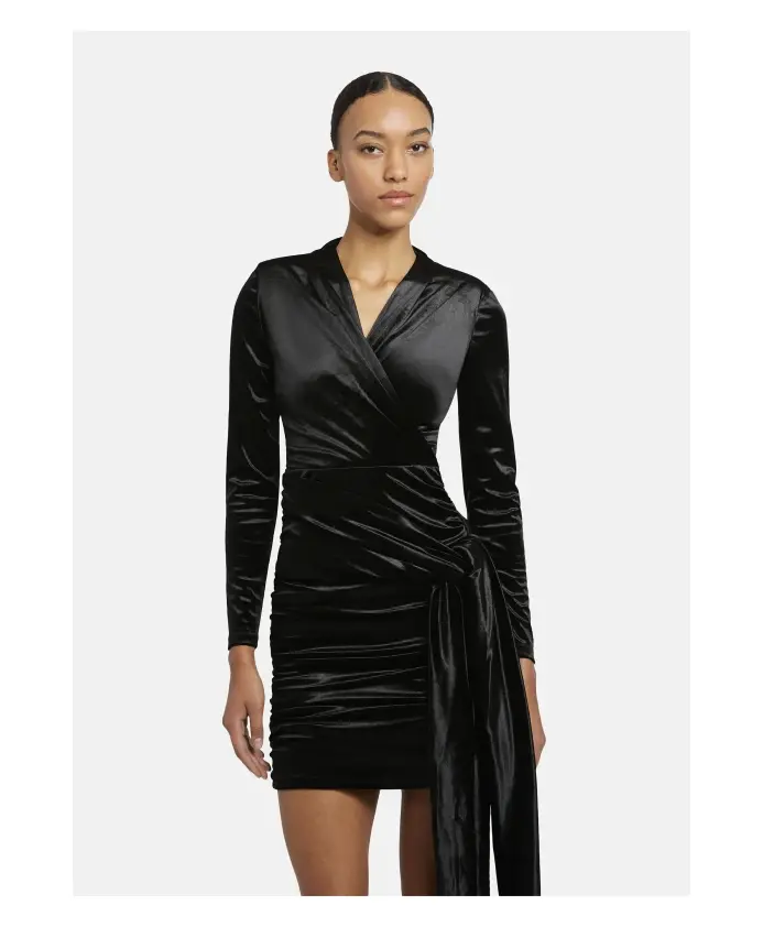 Бархатное мини-платье Nicowa NOSIMA сочетает в себе элегантность и выразительный силуэт. V-образный вырез и эффектные плечевые подкладки придают образу четкие линии, а регулируемый шлейф на талии предлагает множество вариантов стилизации. Облегающий крой подчеркивает мягкую текстуру бархата и гарантирует эффектный образ. Идеально подходит для особых вечеров.