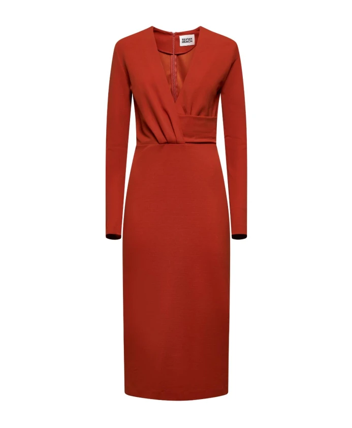 Четкие линии и женственный дизайн отличают это платье миди с драпировкой спереди. Элегантная и удобная вещь, идеально подходящая для повседневной носки с ноткой шика. Драпировка спереди: скульптурный эффект. Длина миди: изысканный силуэт. Вырез в форме капли: сдержанная и утонченная деталь. АРТИКУЛ: PA25002VE. СОСТАВ: 3% эластан, 97% полиэстер