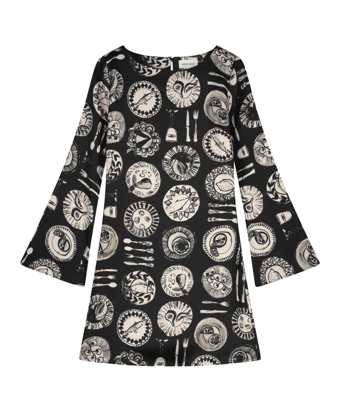 Это мини-платье с игривым черно-белым узором обеспечит вам ослепительный вид на ужине или вечернем мероприятии. Изготовленное из 100% полиэстерового сатина с легким блеском, который красиво переливается на свету, силуэт и глянцевая отделка говорят сами за себя. Оно идеально сочетается с изящными аксессуарами или яркими акцентами.