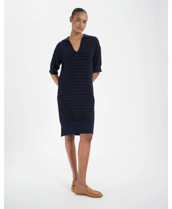 Платье Ocãane идеально подходит для пляжного отдыха. Благодаря красивым полоскам, мягкой ткани из 100% хлопка, небольшому воротнику-поло и боковым разрезам, это платье сочетает в себе комфорт и элегантность для любого случая. Платье Casilda: прямой крой, круглый вырез, без рукавов, длина до середины икры. Разработано в Париже.