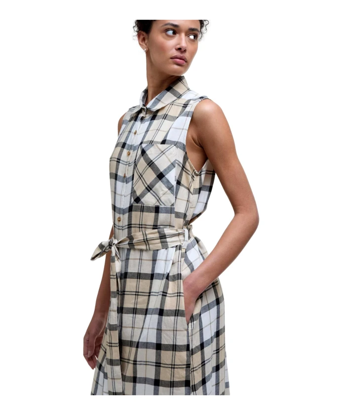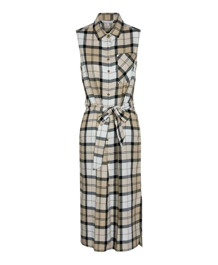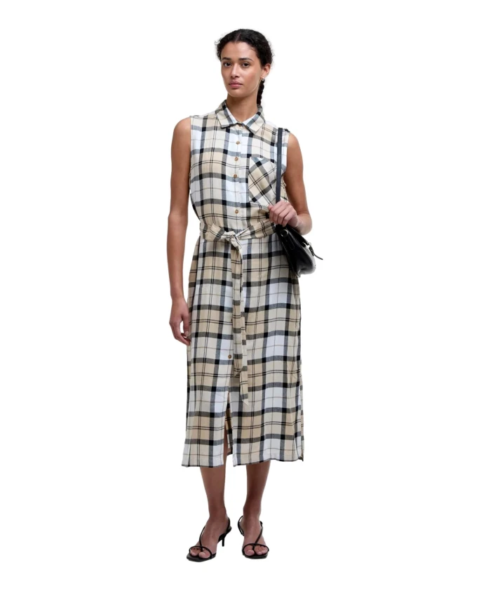 Идеальное для солнечных дней, платье-миди Barbour Agnes украшено клетчатым принтом по всей поверхности и имеет пояс, подчеркивающий женственный силуэт. Это платье-футболка имеет два боковых кармана и застежку на пуговицы спереди. Цвет: Safari Dress Tartan (бежевый). Материал: 70% лиоцелл, 30% лен. Машинная стирка при 30°C.