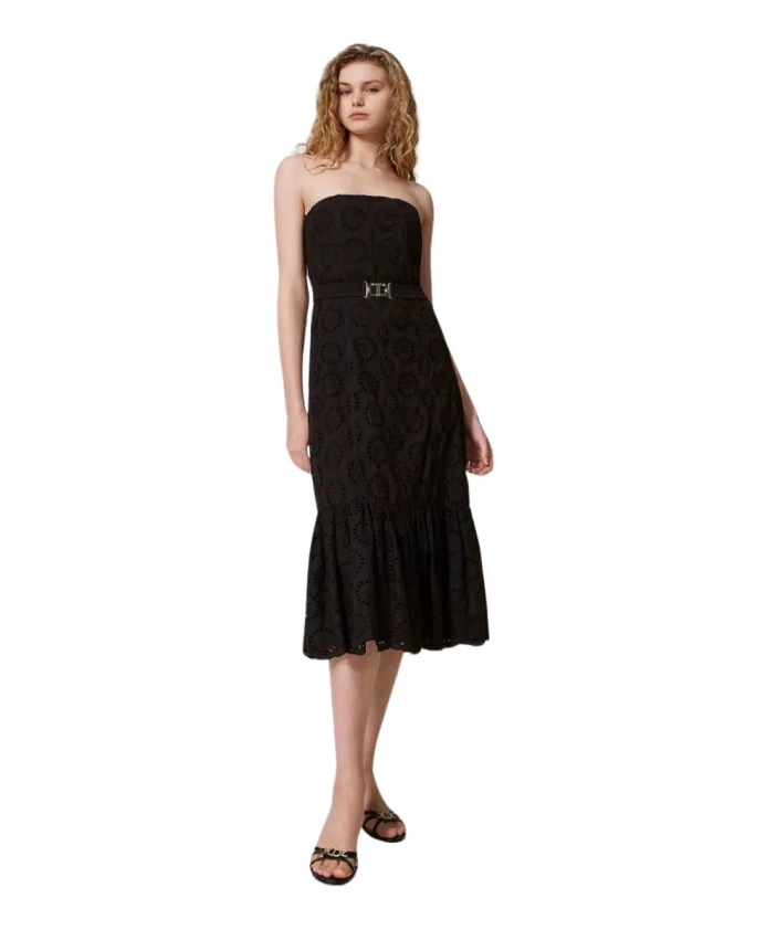 Черное вышитое платье-бюстье Twinset, черный