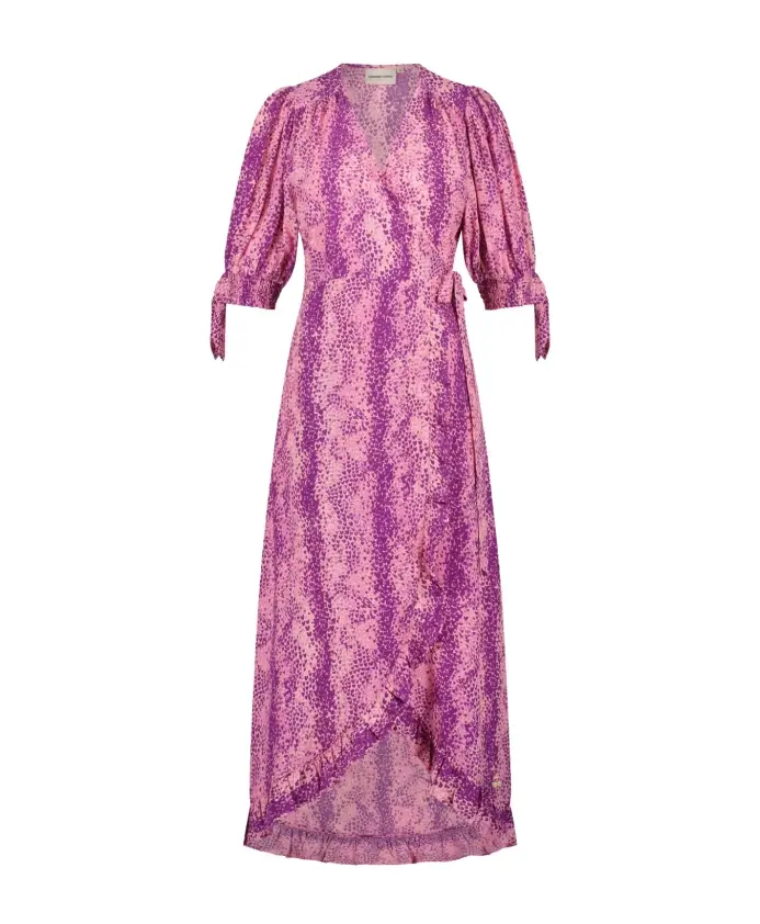 Платье-халат с оборками, рукавами три четверти и эластичными манжетами с бантом. Платье Channa имеет V-образный вырез и модный змеиный принт по всей поверхности. Это платье изготовлено из 54% вискозы LENZINGtrade и ECOVEROtrade: воздушное, мягкое и... LENZINGtrade и ECOVEROtrade являются товарными знаками Lenzing AG.