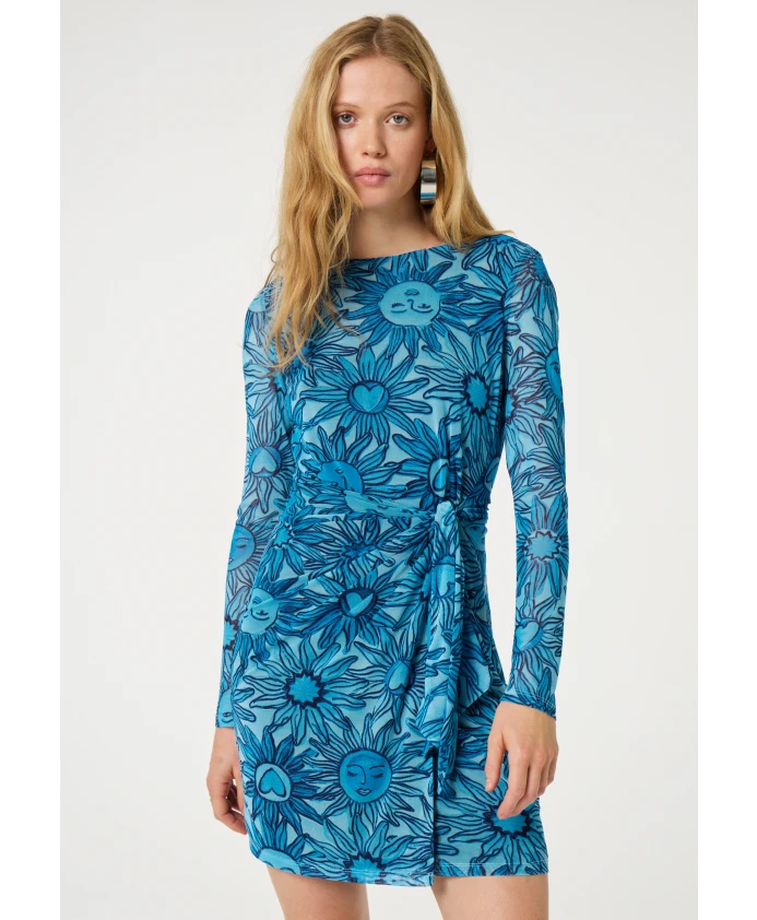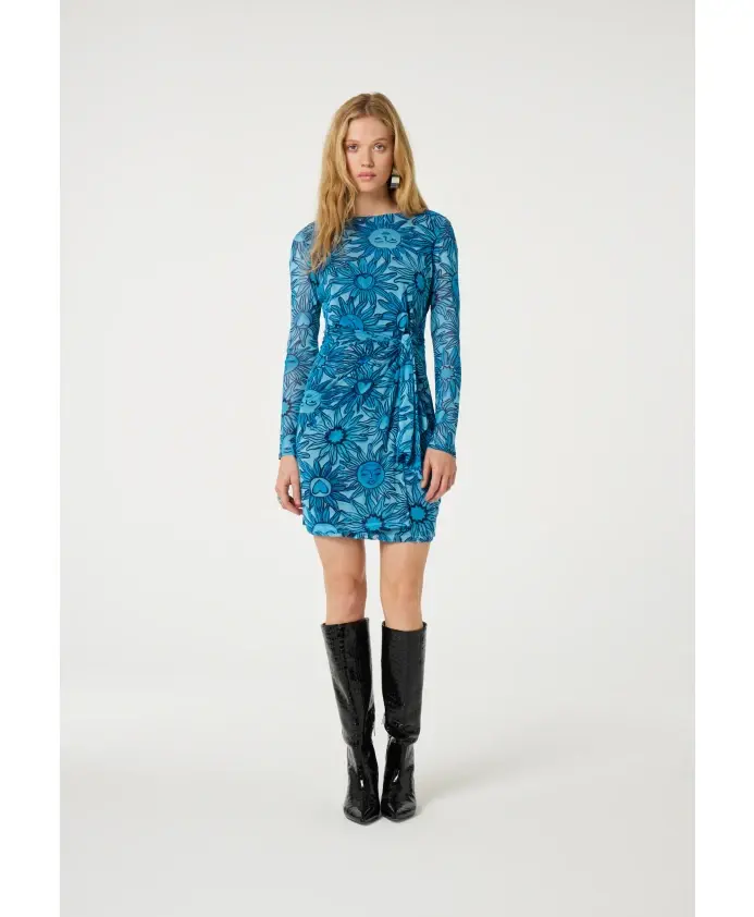 Короткое платье Lilo от Fabienne Chapot станет ярким дополнением вашего гардероба благодаря эффектному принту в виде солнечных лучей по всей поверхности. Это платье с запахом призвано добавить яркий акцент к любому образу. Ключевые особенности: Синий | Круглый вырез | Длинные рукава | Короткая длина