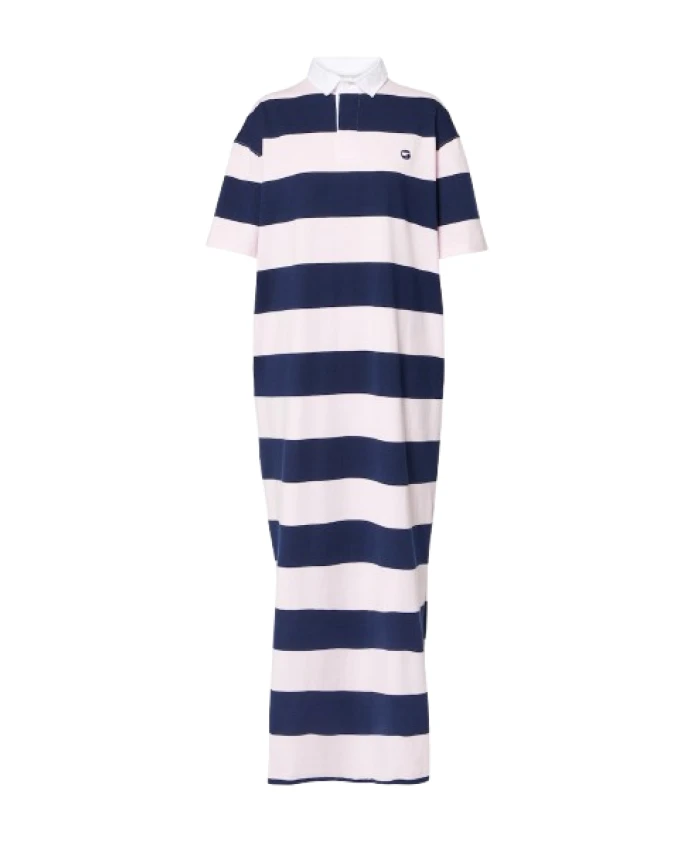 Полосатое длинное платье-поло темно-синего цвета Coperni, синий