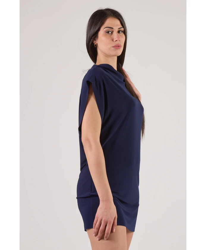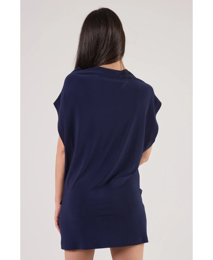 Подчеркните свой стиль с помощью этого цельного мини-платья без рукавов в темно-синем цвете от Norma Kamali. Оно имеет свободный крой, вырез-лодочку и изготовлено из 95% полиэстера и 5% эластана. Рост модели 180 см, размер S. Нажмите здесь, чтобы посмотреть другие женские платья.