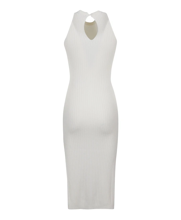 Платье миди с вырезом-капелькой в рубчик Hinnominate, белый