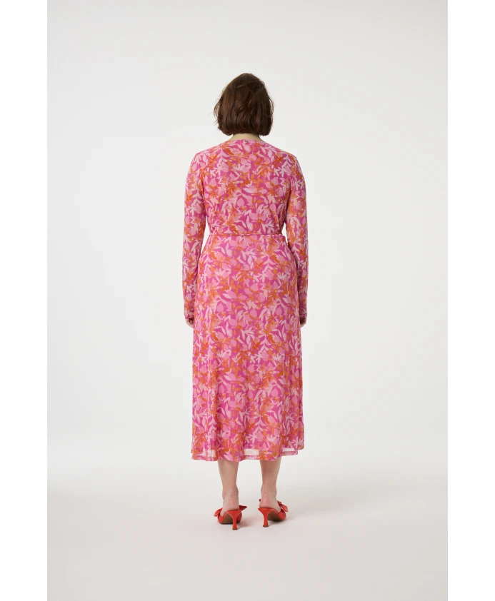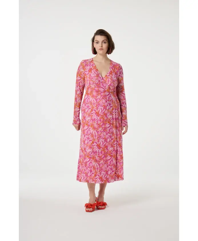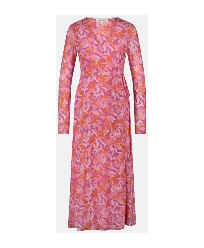 Это платье с длинными рукавами и запахом украшено ярким оранжево-розовым цветочным принтом. Изготовленное из смеси переработанного полиэстера, оно имеет легкую, струящуюся посадку - идеально подходит для солнечного дня в городе или летней вечеринки.