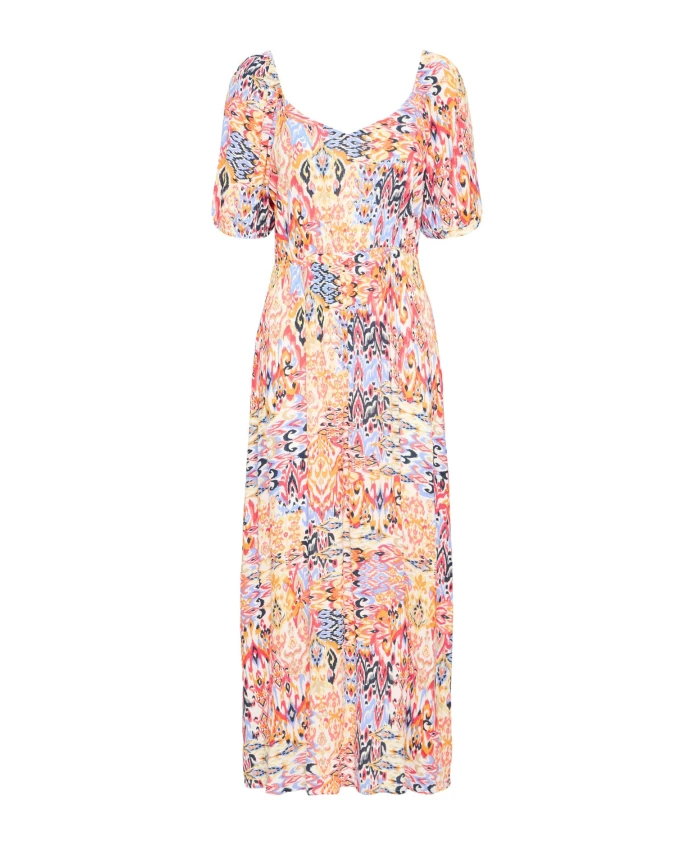 Красивое платье от Ichi с короткими пышными рукавами, женственным вырезом и очаровательным узором. Доставка может занять 2-3 дня, если товар в данный момент отсутствует на складе. Изготовлено из 100% вискозы (LivaEco).