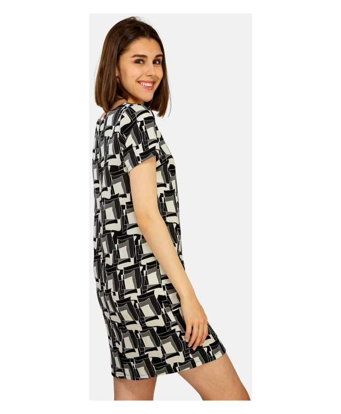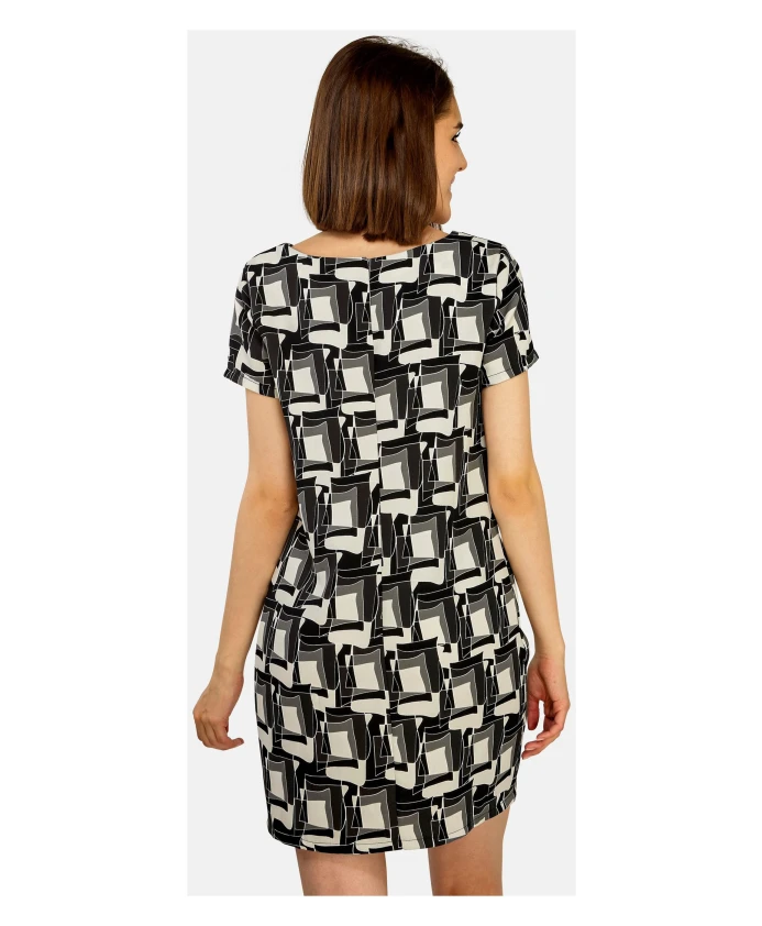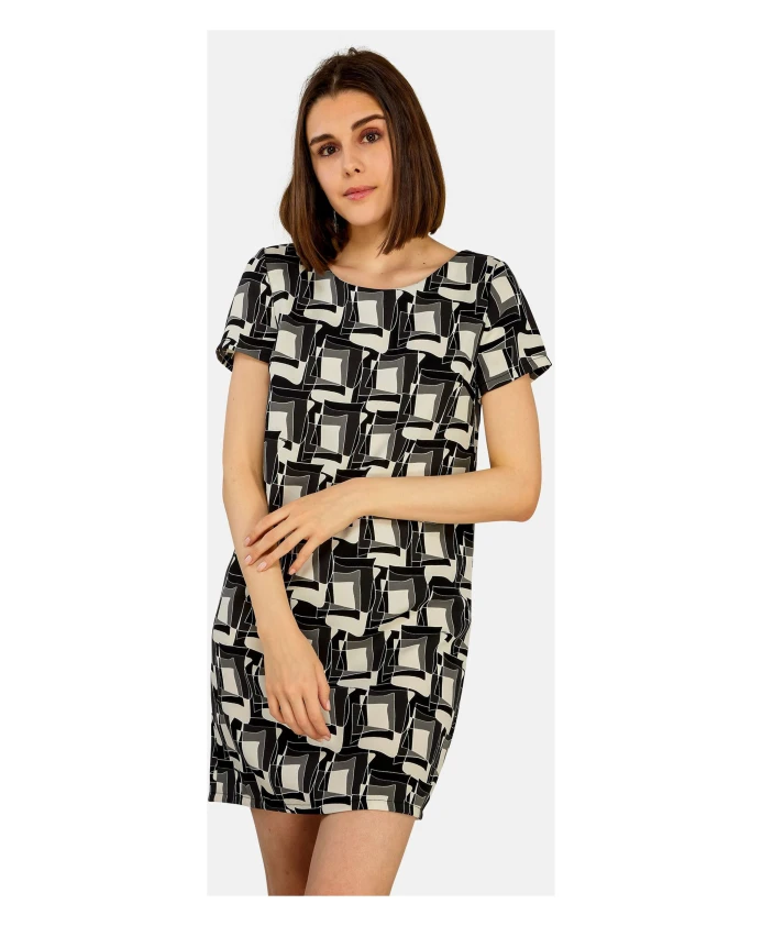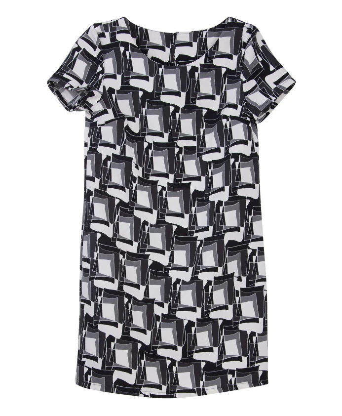 С платьем Geometrica от TOOche вы точно не прогадаете! Простой крой дополнен современным узором, что делает весь образ интересным. Это платье легко сочетается с другой одеждой и всегда комфортно ощущается на коже.