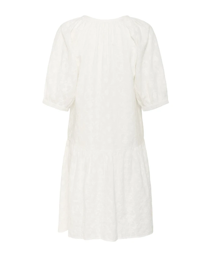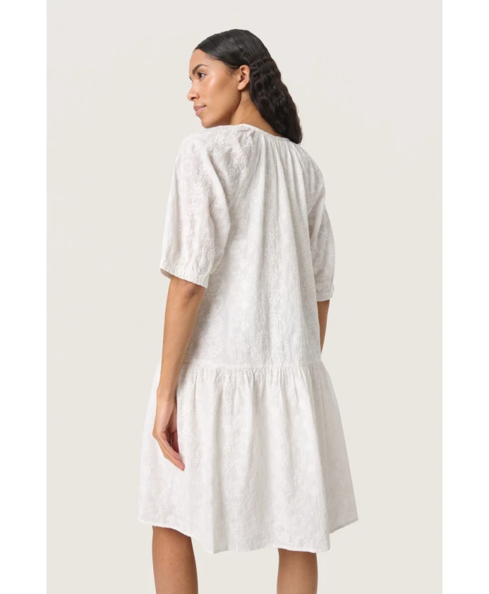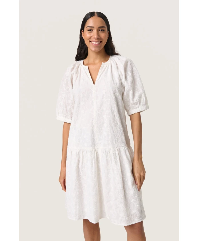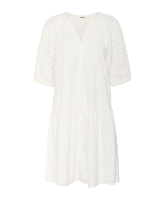 Элегантное и простое платье от Soaked In Luxury с короткими рукавами, V-образным вырезом и легкими оборками на юбке. Свободный крой. Модель: Slisja Dress Ss Dresses 30408673 Broken White. Состав: 100% вискоза.