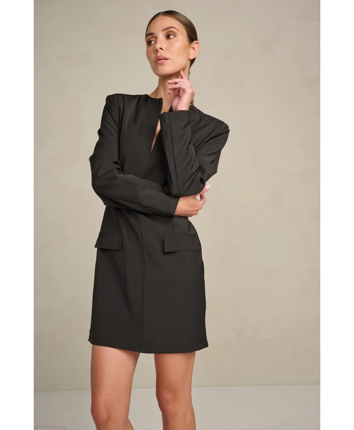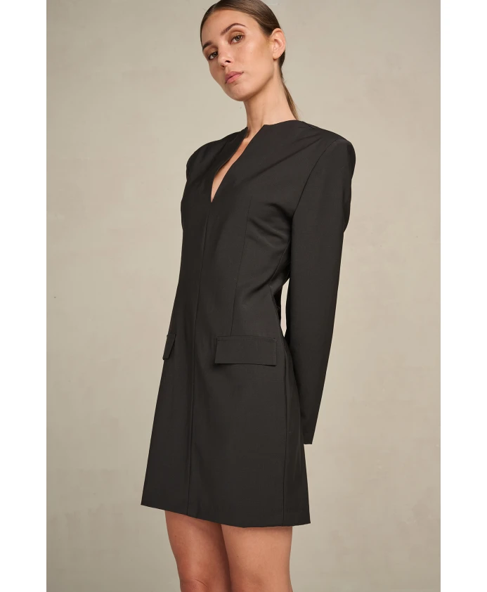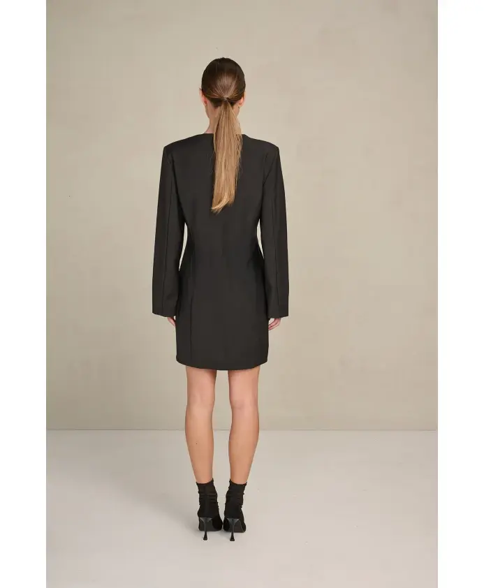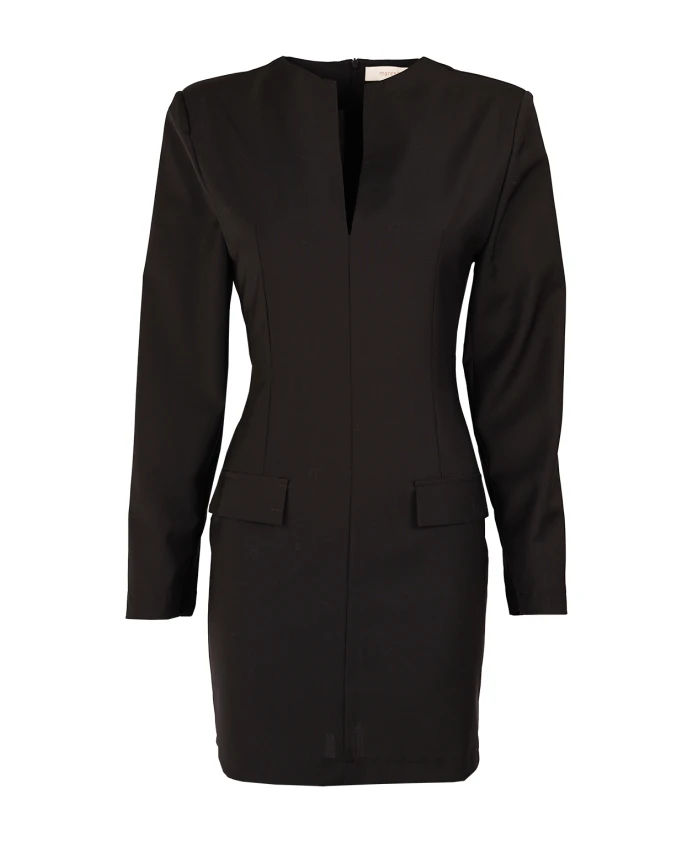 Платье Maiti имеет приталенный силуэт, эффектный V-образный вырез и элегантные застежки-молнии на манжетах рукавов. Это вневременная классика, идеально подходящая для любого особого случая.