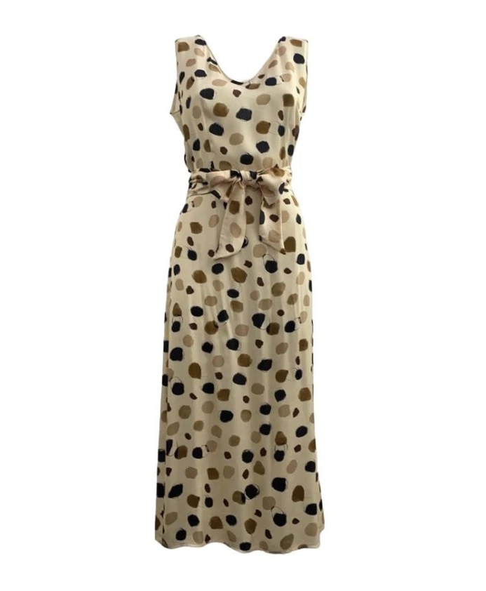 Обновите свой гардероб этим бежевым платьем с короткими рукавами от Manila Grace. Идеальное для любого случая, это платье миди - обязательный элемент гардероба современной женщины.