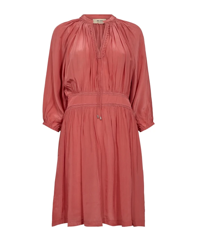 Женственное платье от Mos Mosh с рукавами три четверти, V-образным вырезом и красивой вышивкой. Платье имеет привлекательный силуэт и сшито из мягкой, высококачественной ткани.
